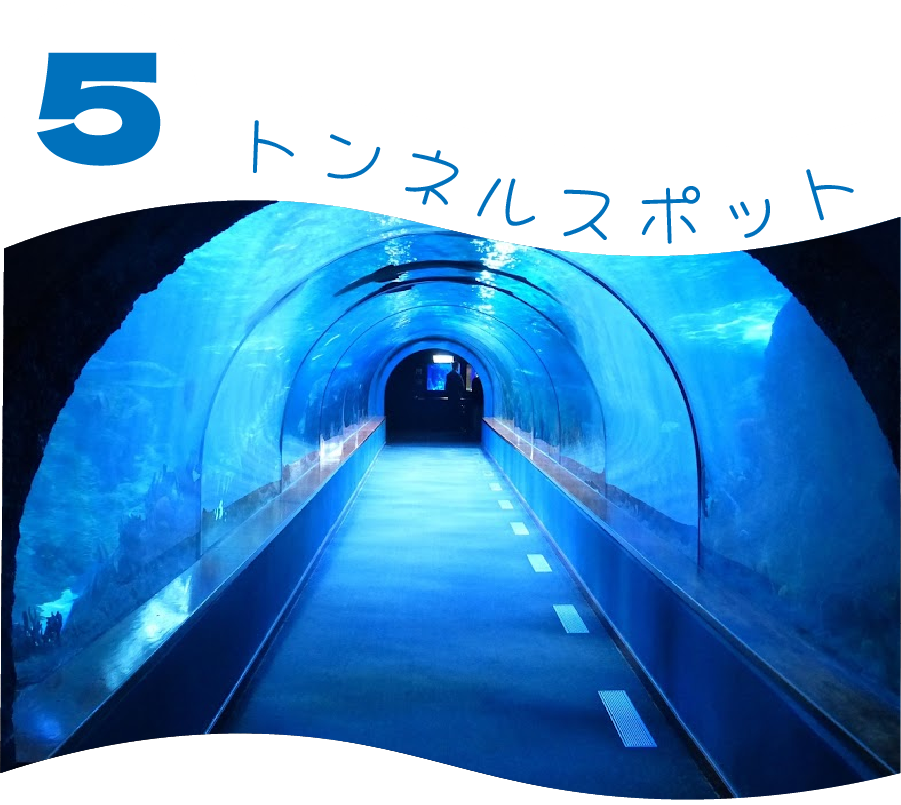 小さいお子様にお土産売り場よりも人気なトンネルです。 運が良いとイルカさん達と写真が撮れます。